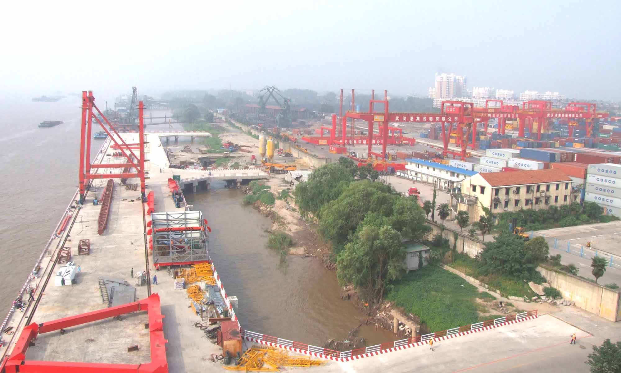 为了满足当前港口市场需求,杨泗港本着“边建设、边生产”的原则开展二期改扩建工程建设,建成一块就及时投用一块,实现港口服务能力的不断提升。目前,二期改扩建工程正加紧实施,已经提前计划时间两个月完成了12.1万平方米的堆场、道路建设任务,5台大型龙门吊也先后配置到位,并已经投入生产作业,主要承担内贸集装箱堆存、转运作业任务。此外,码头前沿322米的岸壁式码头水工工程部分已经完工,第一台岸桥已经开始安装,预计10月份即可投入装卸船作业。目前整个工程完成了70%的进度,已经形成初步的生产能力,到2008年5月份,该工程可全部竣工投产,届时,将为本地区内外贸经济的发展提供坚实、可靠的港口物流平台。