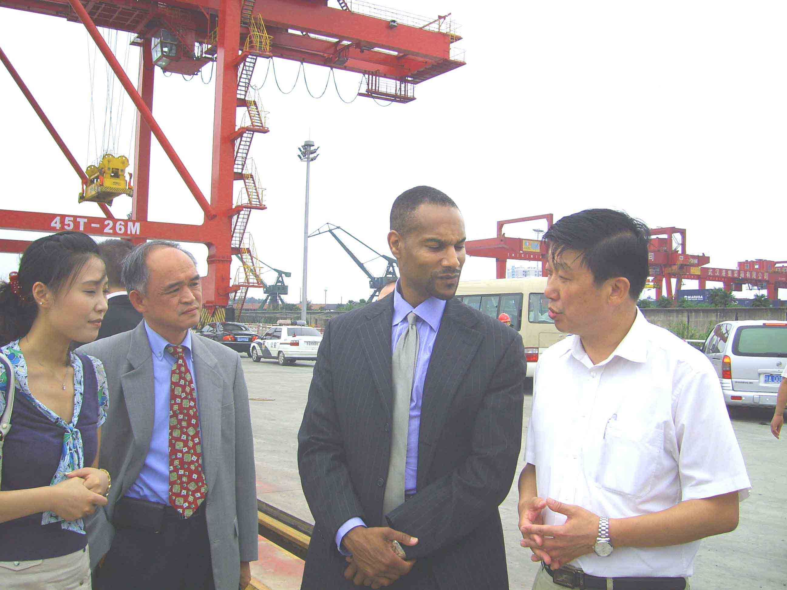 2008年7月23日下午,美国惠普公司全球高级副总裁托尼•普罗菲特先生一行在武汉市常务副市长袁善腊、东湖高新管委会领导及武汉富士康工厂负责人的陪同下,来到杨泗港码头装卸现场,详细考察了码头运作情况,受到了武港集团总经理顾强生为首的港口管理人员的热情接待。