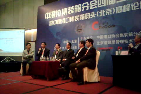 2010中港协集装箱分会四届三次理事会暨中国港口集装箱码头高峰论坛于2010年11月5日在北京召开。来自全国各地的集装箱码头主要负责人、政府官员及协会领导共140余人参加了会议。公司总经理顾强生出席了会议。