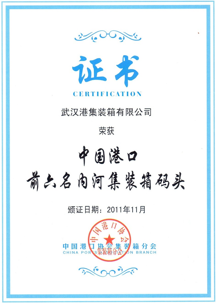 武港集箱荣获“中国港口前六强内河集装箱码头”荣誉称号
