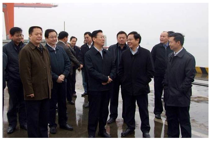 省政协主席杨松、省政协秘书长王树华由市政协主席吴超等随同,2011年11月29日上午来到武汉新港阳逻集装箱二期码头考察指导工作。市政府副市长尹维真、武汉新港管委会主任张林等领导在武汉新港阳逻集装箱二期码头提前迎候并陪同。