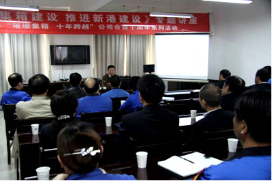 2013年4月24日下午,作为武港集箱合资十周年系列活动之一、由集团总经理顾强生主讲的《加快集箱发展、推进新港建设》的专题讲座在工程部二楼会议室里举行。来自武港集箱、中港物流公司班组长以上的管理干部近90人在讲座现场分享。