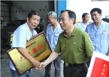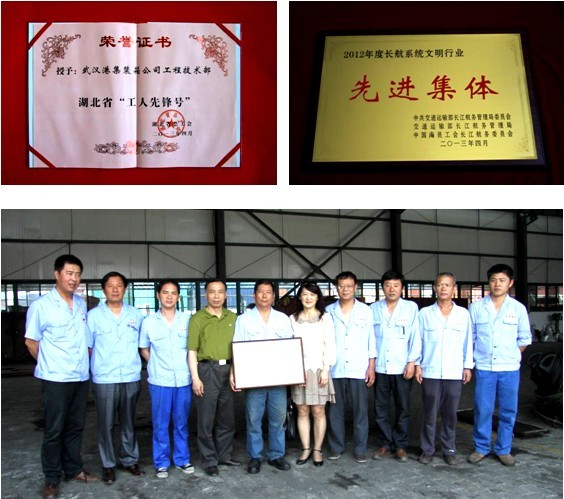 2013年6月3日上午,武汉港务集团党委副书记、工会主席杨建党一行来到武港集箱工程技术部设备维修现场,亲手将湖北省总工会颁发的“工人先锋号”荣誉证书授予工程技术部,同时,杨建党书记向工程技术部送来由长航局党委、长航局、长航局工会联合颁发的“2012年度长航系统文明行业先进集体” 匾牌。这是工程技术部获武汉市总工会颁发的“工人先锋号”匾牌后,再获湖北省省总工会授予的湖北省“工人先锋号”荣誉称号。