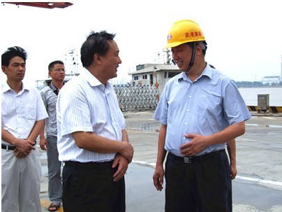 2013年8月23日上午,安庆市人民政府副秘书长吴唐应带队、安庆市港口建设发展与管理考察组,在武汉新港管理委员会港口管理处处长余也的陪同下,专程来到武港集箱阳逻二期码头参观考察。