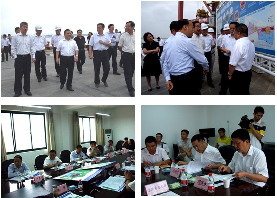 在码头前沿武汉新港委精心制作的“武汉新港.迈向长江中游航运中心”大型宣传牌前,武汉新港委主任张林详细地向甘荣坤副省长一行汇报了武汉新港区位及总体规划。在随后的座谈会上,甘荣坤副省长在认真听取了与会同志对武汉新港建设及武汉综合保税区申报工作情况汇报后,明确部署了工作任务。