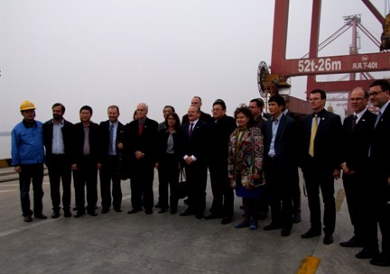2013年12月5日下午,巴西南大河州州长代表团在武汉新港管委会总工程师刘振兴的陪同下,专程到武港集箱阳逻二期码头参观考察。
