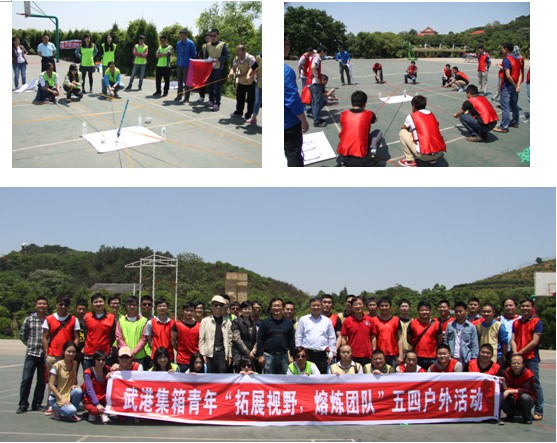 为了纪念“五四运动”95周年,5月6日,武港集箱团总支与中港物流团支部联合组织四十余名团员青年前往江夏古龙山庄开展了以“拓宽视野 熔炼团队”为主题的拓展训练活动。武港集箱总经理陈文铭,党委书记、副总经理盛刚,副总经理胡望安亲临拓展现场,并分别参加拓展项目的团队对抗,与武港集箱和中港物流的青年员工们一起,共同度过愉快的节日。