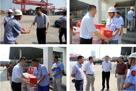 在作业现场,陈伯虎董事长向公司领导仔细询问了近期集装箱装卸情况,并为一线员工送来了慰问金和降温饮料,将集团领导的关爱和组织的关心传达给了武港集箱广大员工,在炎炎的夏日带来一份清凉,让奋斗在生产一线的员工倍感温暖。临行前,陈伯虎董事长再三叮嘱要关心和关爱员工,合理安排作业时间,确保各项防暑降温工作措施落实。