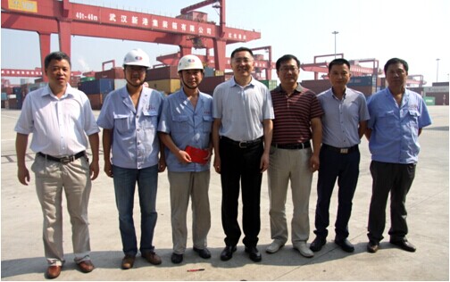 7月23日,正值入伏后的酷暑季节。上午9:30时,尽管烈日还未到正午灼人,但武港集箱若大的集装箱堆场,己是热浪滚滚。集团公司董事长、党委书记陈伯虎,在集团工会办公室主任袁硕的陪同下,冒着高温来到公司作业现场,慰问顶着烈日奋战在生产一线的基层员工。