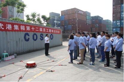 本届趣味运动会由“海底捞月”、“瞎子穿拖鞋”、“滚雪球”、“雷霆战鼓”四个集体项目组成,着重锻炼员工的团队协作能力。由三个支会分别组成的参赛队共70余名员工齐聚比赛场地(集装箱堆场),公司领导盛刚代表公司班子成员作赛前动员,并宣布“第十二届员工趣味运会开始”后,现场气氛迅速活跃起来。各支会队员在支会席的带领下商讨策略、以十二分的精神状态投入比赛。8人组的“海底捞月”、4人组的“瞎子穿拖鞋”、10人组“滚雪球”及8人组的“雷霆战鼓”项目趣味无穷,此起彼伏的掌声、笑声、喝彩声淹没了比赛的紧张氛围,短短一个多小时的活动如火如荼、精彩纷呈。最终机关支会夺得“海底捞月”和“瞎子穿拖鞋”两项第一,营运支会和工程支会分别获得“滚雪球”、“雷霆战鼓”项目的第一。