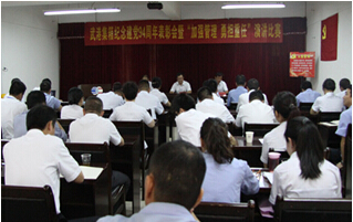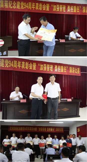 为庆祝建党94周年,武港集箱于2015年7月1日上午,在公司工程技术部二楼会议室举行纪念建党94周年表彰会。公司﹙除当班外﹚全体党员参加了会议。公司领导盛刚、胡望安、佘建群出席会议,会议由佘建群书记主持。