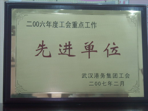 武汉港务集团工会授予武港集箱2006年度工会重点工作“先进单位”