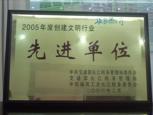 中交长江航务局、中国海员工会授予武港集箱2005年度创建文明行业“先进集体”